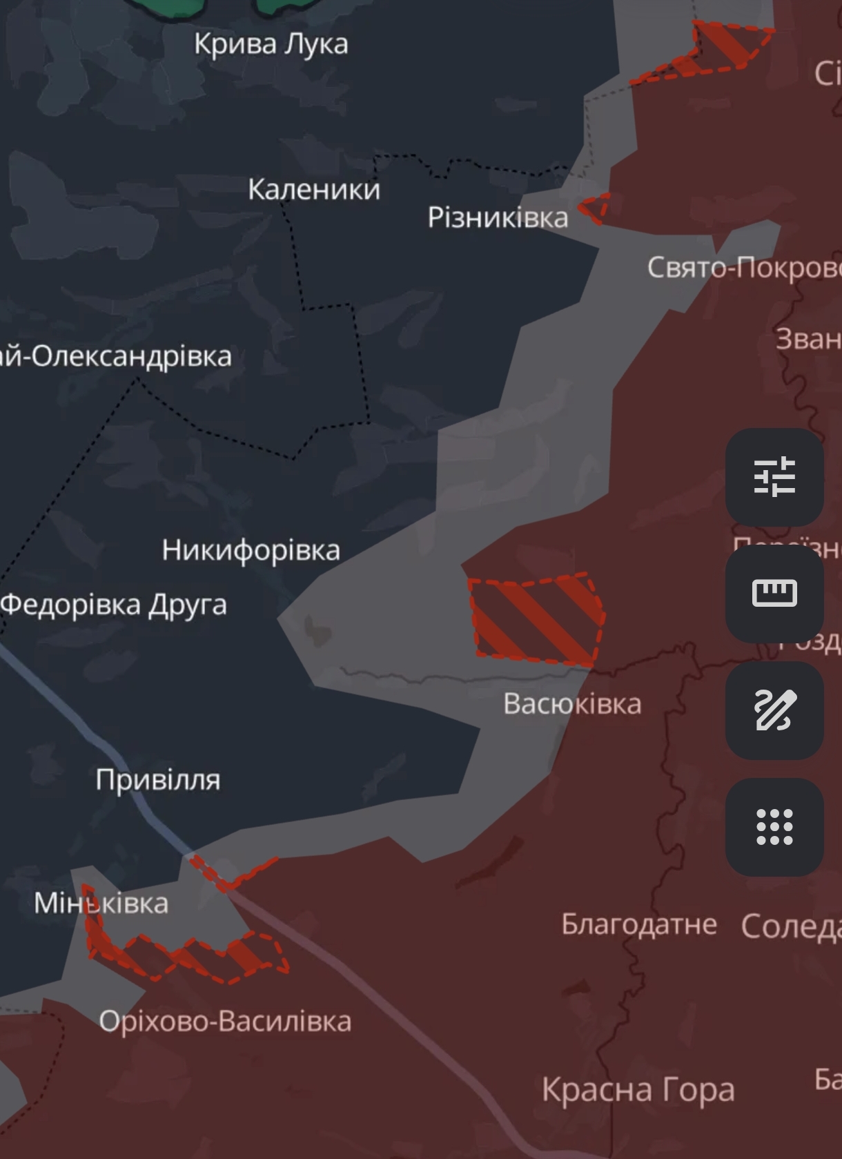Отметим, что это соответствует и украинским данным. Судя по карте Deep State, от "серой зоны" в райне Приморского и реки Конка по прямой до южных окраин областного центра даже меньше 12 км.
