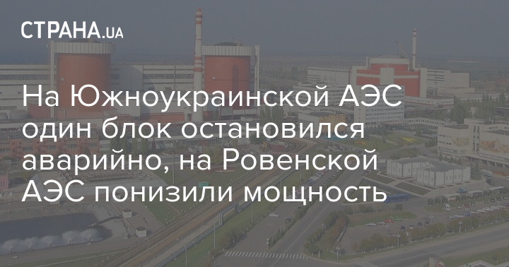 На Южноукраинской атомной электростанции один блок остановился аварийно, а на Ровенской АЭС вынуждено была понижена мощность.