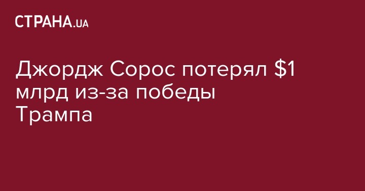 Глобальный олигарх Джордж Сорос лишился почти $1 млрд после подведения результатов голосования и победы Дональда Трампа на президентских выборах в США.