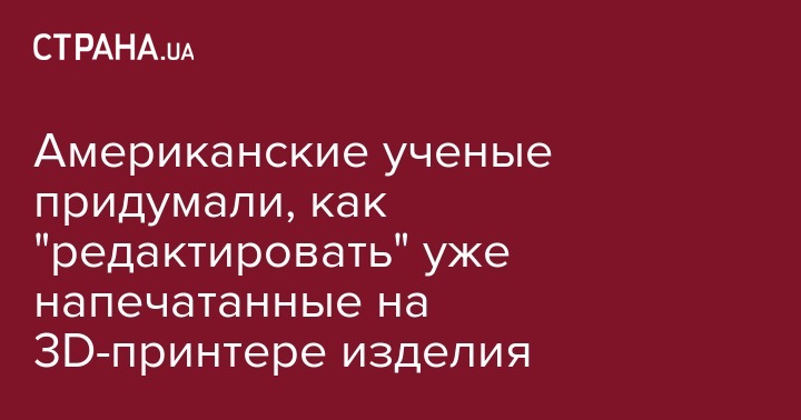 Американские ученые придумали, как "редактировать" уже напечатанные на 3D-принтере изделия