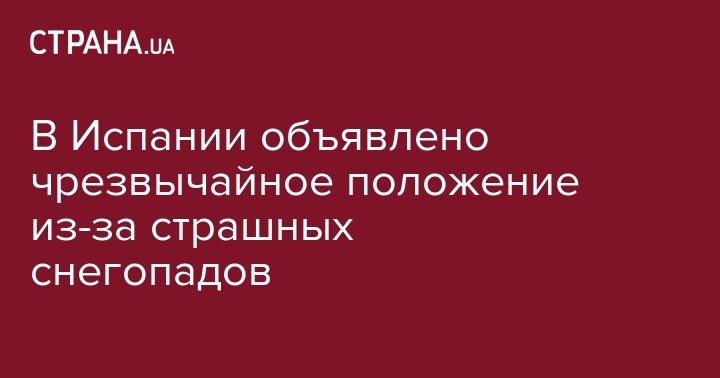 Из-за сильных снегопадов и вьюг в более, чем половине из 50 провинций Испании, власть объявила чрезвычайное положение. В южных туристических городах страны снег выпал впервые за последние десятилетия, информирует Associated Press.