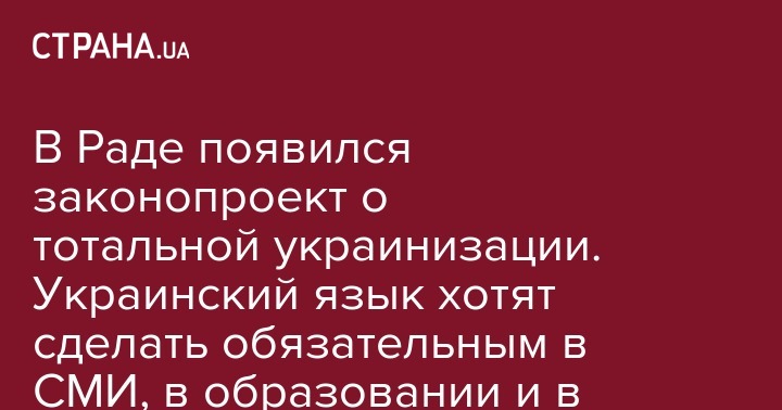 В Верховной Раде Украины 19 января был зарегистрирован законопроект №5670 "О языке". Его авторы предлагают сделать обязательным использование украинского языка во всех сферах государственной и общественной жизни, а также в СМИ.