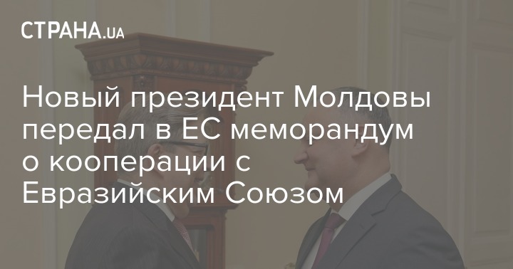 Новоизбранный президент Молдовы Игорь Додон передал руководителю делегации Евросоюза Пиркке Тапиоле текст Меморандума о молдавском сотрудничестве с Евразийским союзом.