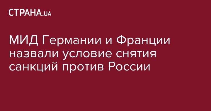 Министры иностранных дел Германии и Франции единогласно заявили, что любые начинания, касаемые отмены санкций против России, должны быть связаны с прогрессом в мирном урегулировании ситуации на востоке Украины. Об этом сообщает Reuters.