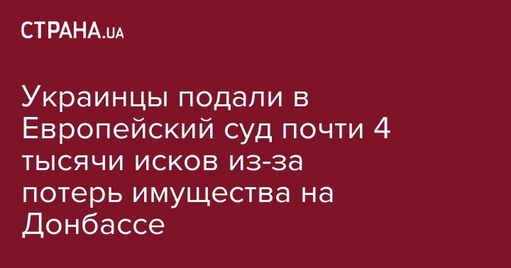 В 2016 году в Европейский суд по правам человека в Страсбурге поступило и принято к рассмотрению 3,9 тыс. заявлений с претензиями к государству Украина от лиц, которые понесли имущественные потери во временно оккупированных боевиками районах Донецкой и Луганской областей.