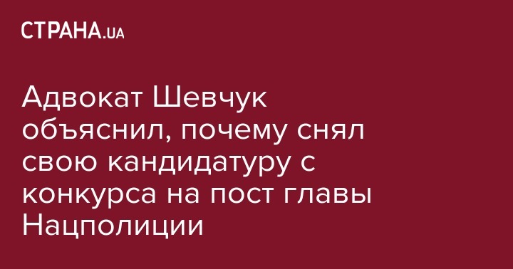 Известный адвокат, защищавший Геннадия Корбана Алексей Шевчук, снял свою кандидатуру с конкурса на должность главы Национальной полиции. Свое решение он объяснил в Facebook.