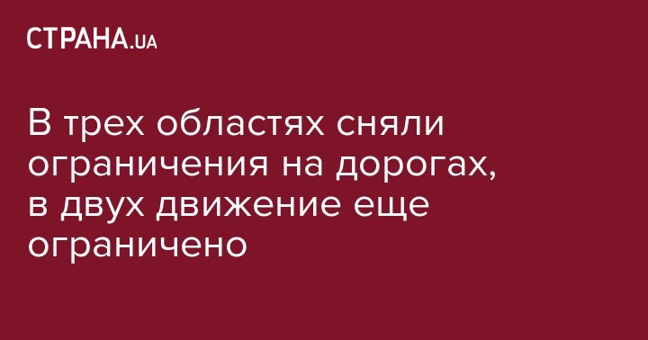 4 февраля, в трех областях отменили ограничения для движения транспорта, введенные из-за непогоды. Это Киевская, Житомирская и Хмельницкая области. Об этом сообщает пресс-служба "Автомобильных дорог Украины".