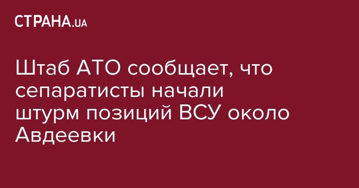 Штаб АТО сообщает, что сепаратисты начали штурм позиций ВСУ около Авдеевки