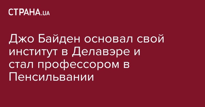 Помимо должности профессора в Университете штата Пенсильвания Байден займет позицию в управлении "Института Байдена", основанного недавно в Делавэрском университете в американском штате Делавэр.