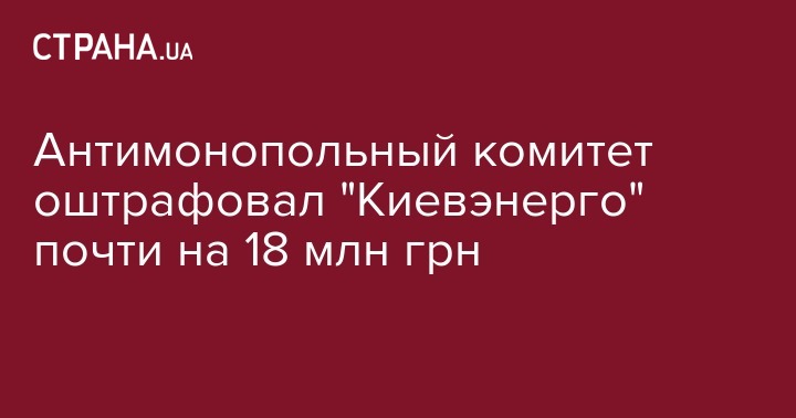 "Киевэнерго" ограничивало ПНТ в выборе ими потенциальных потребителей и лишило их возможности осуществлять хозяйственную деятельность в Киеве, в частности, путем выдвижения необоснованных требований к проекту договора на распределение электроэнергии. За указанное нарушение на "Киевэнерго" наложен штраф 17 млн 958,891 тыс. грн", – говорится в сообщении АМКУ в среду вечером.