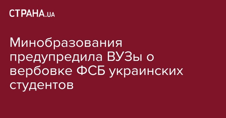 Министерство образования Украины направило ректорам вузов предписание, в котором предлагается информировать правоохранительные органы (речь идёт, прежде всего, о департаменте защиты национальной государственности СБУ) о "вербовочной деятельности сотрудников ФСБ РФ" по отношению к студентам, преподавателям и научным сотрудникам в системе высшего образования.