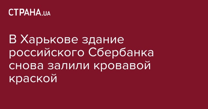 В Харькове здание российского Сбербанка снова залили кровавой краской