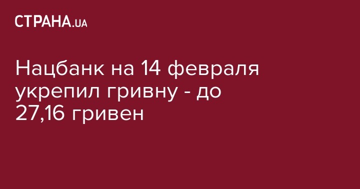 Нацбанк на 14 февраля укрепил гривну - до 27,16 гривен