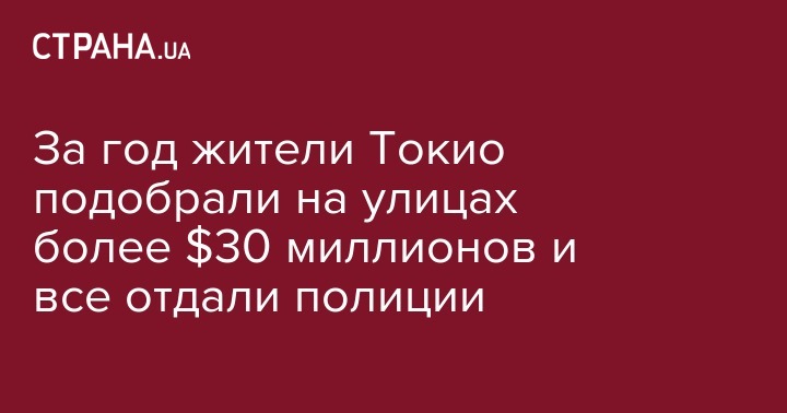 За 2016 год жители Токио подобрали на улице и передали правоохранителям наличные на сумму в 3,67 млрд иен (32,5 млн долларов). Об этом сообщает ВВС.
