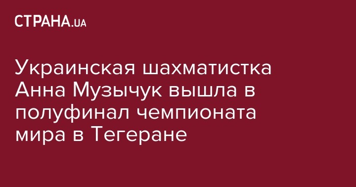 В столице Ирана Тегеране завершились вторые партии матчей 1/4 финала чемпионата мира по шахматам, где в одной из пар украинка Анна Музычук обыграла Антоанетту Стефанову из Болгарии и вышла в полуфинал.