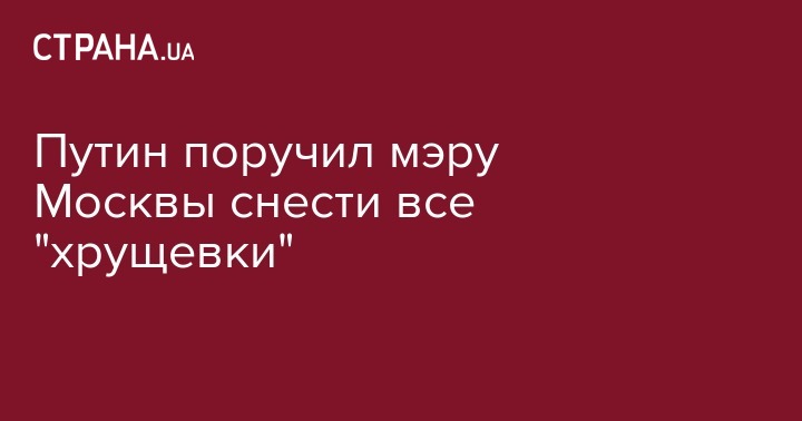 Президент России Владимир Путин поручил мэру Москвы Сергею Собянину снести в российской столице все пятиэтажные дома - так называемые "хрущевки" и на их месте построить новые дома. Об этом сообщает "ТАСС".