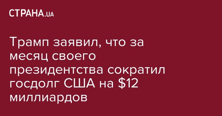 Президент США Дональд Трамп сообщил в своем микроблоге в Twitter, что за месяц своего правления успел снизить госдолг примерно на 0,1% и пожаловался, что СМИ не осветили эту тему.