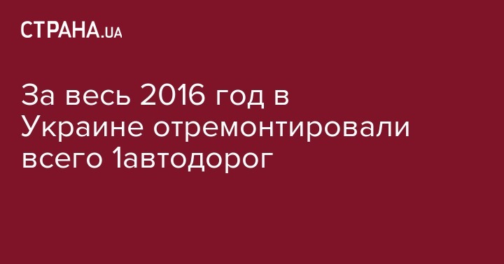За весь 2016 год в Украине был отремонтирован лишь 1% автомобильных дорог. При этом 95% украинских дорог остаются в непригодном состоянии.