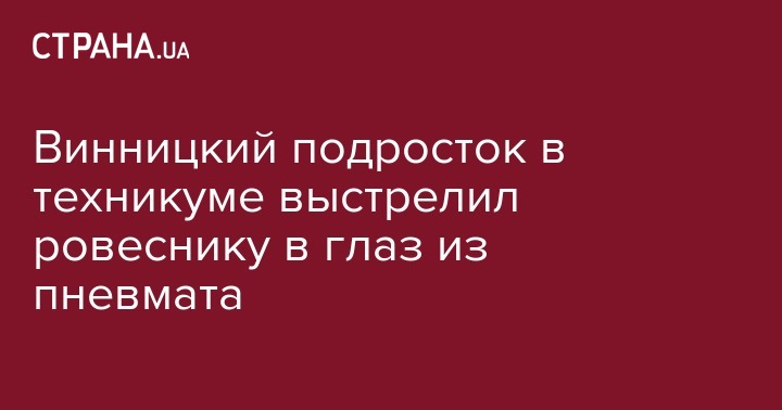 В городе Калиновка Винницкой области 17-летний парень на территории учебного заведения выстрелил 16-летнему подростку в глаз из пневматического оружия. Об этом сообщает пресс-служба местной полиции.