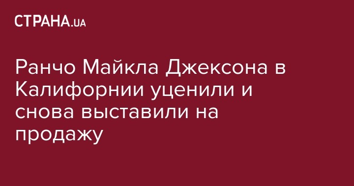 Ранчо Майкла Джексона в штате Калифорния (США) выставлено на продажу повторно со значительно сниженной ценой, сообщает The Wall Street Journal.