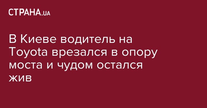 В Киеве водитель на Toyota врезался в опору моста и чудом остался жив