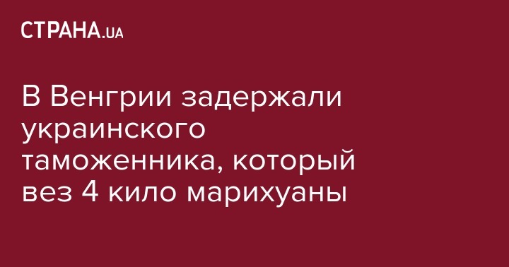 Венгерские полицейские задержали украинского таможенника, который пытался ввезти на территорию Украины пакет с 4 килограммами марихуаны. Об этом сообщается на сайте губернатора Закарпатья Геннадия Москаля.