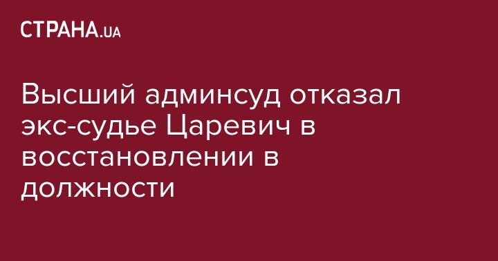 Высший админсуд отказал экс-судье Царевич в восстановлении в должности