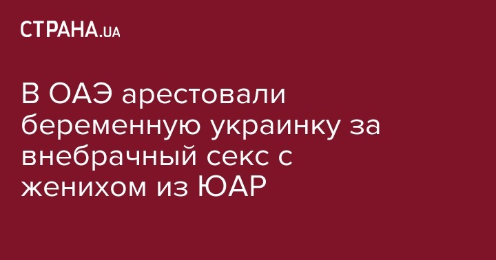 Украинку и ее жениха из Южной Африки задержали в Объединенных Арабских эмиратах за внебрачные половые отношения. Об этом пишет DailyMail.