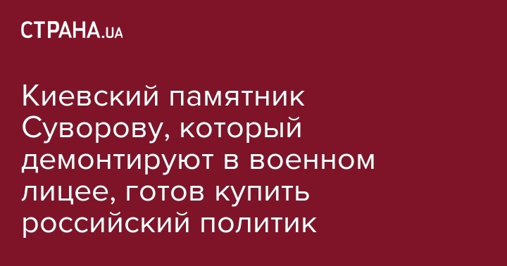 Избранный в Госдуму России в аннексированном Крыму Андрей Козенко заявил о желании приобрести памятник российскому полководцу Александру Суворову, который планируют демонтировать на территории Киевского военного лицея. Об этом сообщает ТАСС.