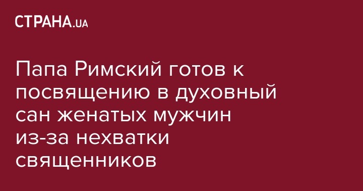 Папа Франциск заявил, что может рассмотреть посвящения в духовный сан женатых мужчин, но только по очень исключительным обстоятельствам и для борьбы с проблемой нехватки католических священников, передает ВВС.
