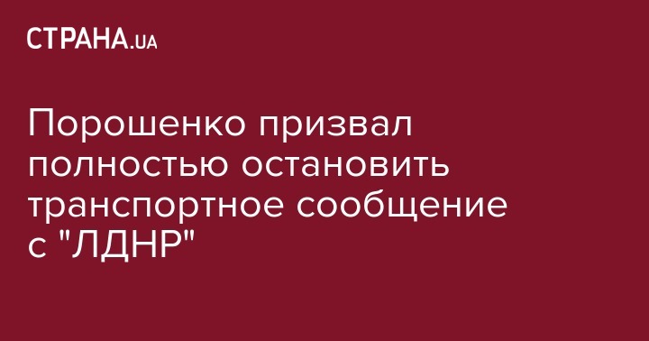 Президент Петр Порошенко предложил Совету национальной безопасности и обороны Украины временно полностью прекратить транспортное сообщение с территорией т.н. "ЛДНР". Об этом сообщает "Интерфакс-Украина".