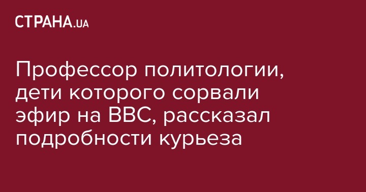Американский профессор политологии Роберт Келли рассказал о курьезе в прямом эфире, когда его интервью прервали собственные дети. Во время интервью он появился в кадре с детьми и своей женой. Об этом сообщают "Украинские Новости" со ссылкой на ВВС.