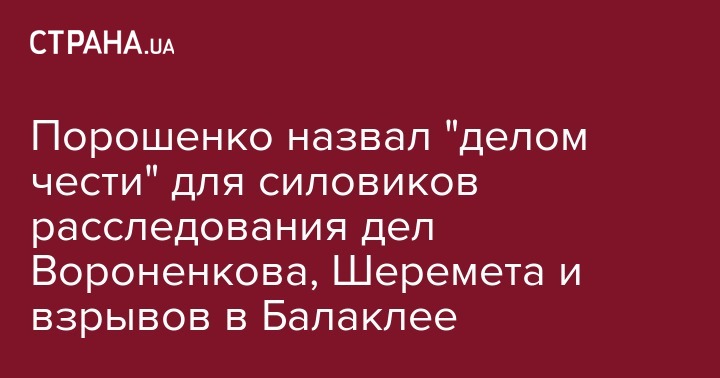 "Делом чести всех правоохранительных органов Украины, и служба (СБУ, - ред.) должна подставить свое плечо и помочь, является и раскрытие убийства вчерашнего, когда возле "Премьер Паласа" был убит бывший депутат Госдумы России, главный свидетель по делу Януковича, и раскрыть убийство журналиста Павла Шеремета, и раскрыть вчерашнюю диверсию в Харьковской области, это тоже дело военной контрразведки совместно с Военной прокуратурой. Но от ошибок не застрахованы даже те спецслужбы, история которых насчитывает не 25, а уже сотню лет", - отметил глава государства.
