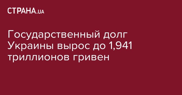Государственный долг Украины вырос до 1,941 триллионов гривен