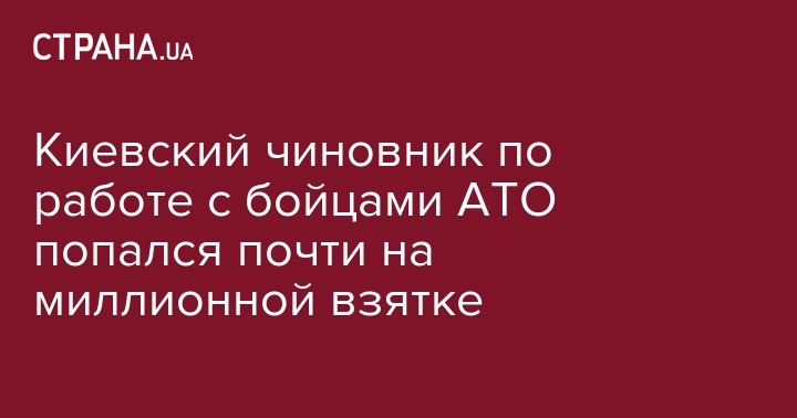 Киевский чиновник по работе с бойцами АТО попался почти на миллионной взятке