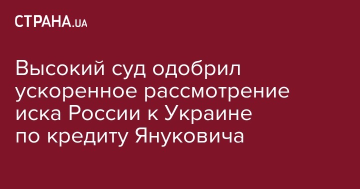 Высокий суд одобрил ускоренное рассмотрение иска России к Украине по кредиту Януковича