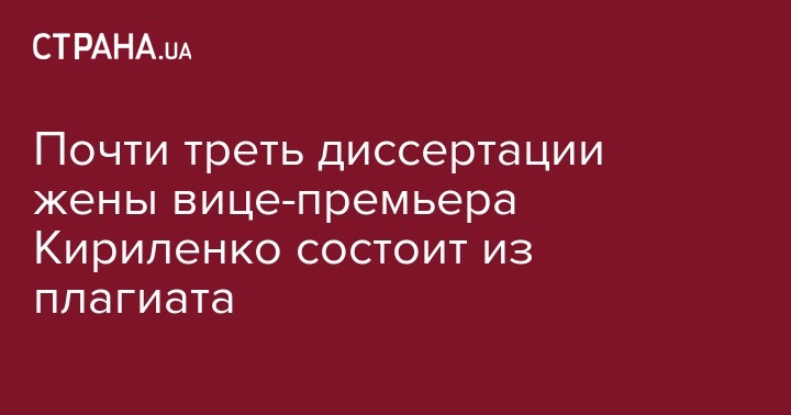 Почти треть диссертации жены вице-премьера Кириленко состоит из плагиата