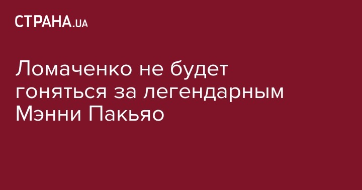 Чемпион мира по версии WBO во втором полулегком весе украинец Василий Ломаченко не рассматривает бой с легендарным 38-летним филиппинцем Мэнни Пакьяо, владеющим титулом WBO в полусреднем весе, как одну из своих целей.