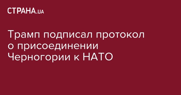 Президент США Дональд Трамп подписал протокол о присоединении Черногории к НАТО, завершив таким образом процедуру ратификации этого процесса со стороны США. Об этом сообщил в Twitter пресс-секретарь Белого дома Шон Спайсер.