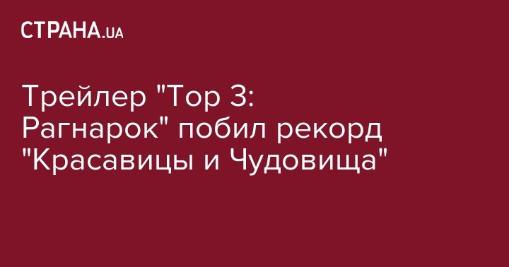 Первый трейлер фильма "Тор 3: Рагнарок" установил новый рекорд для компаний Marvel и Disney, сообщает The Hollywood Reporter. В первые 24 часа ролик набрал 136 миллионов просмотров.