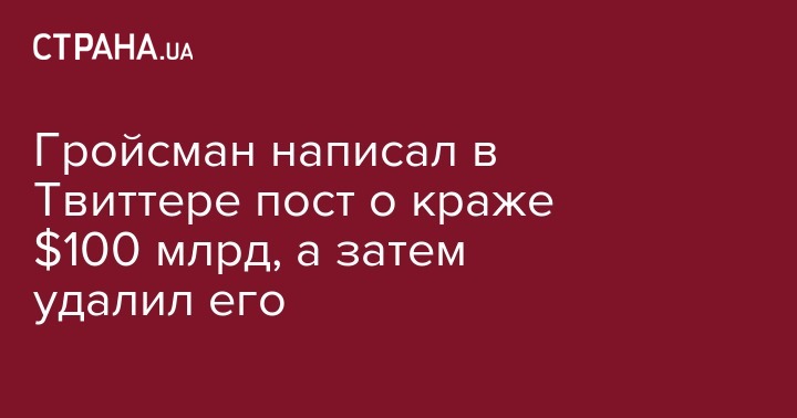 Гройсман написал в Твиттере пост о краже $100 млрд, а затем удалил его