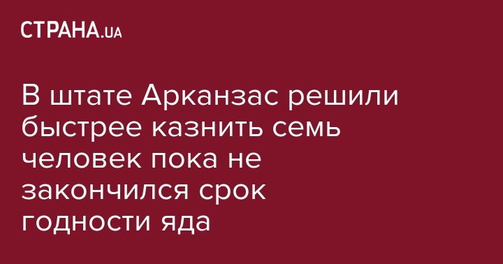 Власти штата Арканзас (США) постановили оперативно привести в исполнения смертные приговоры семерым осужденным из-за окончания срока годности используемого для "последней инъекции" яда. Казни собрались провести в течение двух следующих недель.