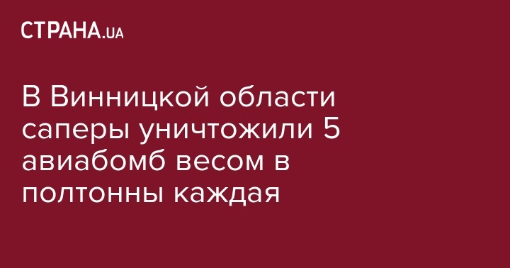 Сегодня, 22 апреля, пиротехники Винницкой области уничтожили путем подрыва пять 500-килограммовых авиационных бомб. Об этом сообщает пресс-служба ГУ ГСЧС Украины в Винницкой области.