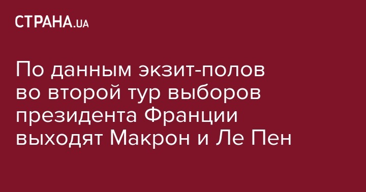По данным экзит-полов во второй тур выборов президента Франции выходят Макрон и Ле Пен