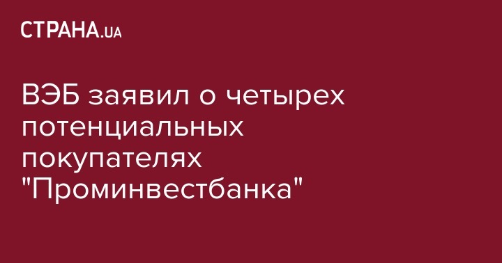 Российский "Внешэкономбанк" (ВЭБ) заявил, что рассматривает предложения четырех инвесторов о покупке Проминвестбанка. Об этом сообщают "Украинские Новости".
