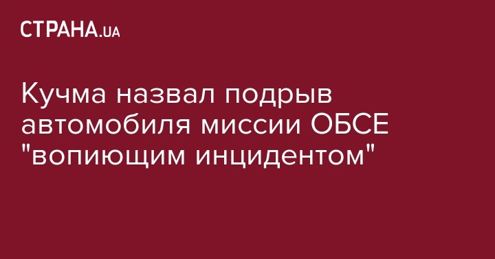 Представитель украинской стороны в Трехсторонний контактной группе по урегулированию ситуации на Донбассе, второй президент Украины Леонид Кучма прокомментировал вчерашний инцидент с подрывом автомобиля патруля СММ ОБСЕ. Об этом сообщила пресс-секретарь представителя Украины в контактной группе Дарка Олифер на своей странице в Facebook.