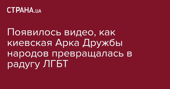 С высоты птичьего полета квадрокоптер запечатлел процесс превращением киевской Арки "Дружбы народов" в радугу ЛГБТ.