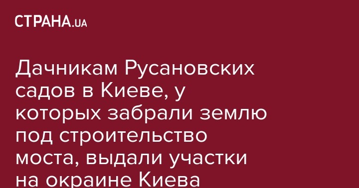 Киевская городская государственная администрация уже выплатила денежные и земельные компенсации 138 владельцам земельных участков в районе Русановских садов в Днепровском районе столицы для завершения строительства Подольско-Воскресенского моста на Троещину.