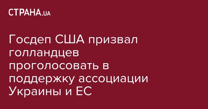 Представитель Госдепартамента США Элизабет Трюдо заявила о призыве властей США к голландцам проголосовать в поддержку соглашения об ассоциации Украины и ЕС.