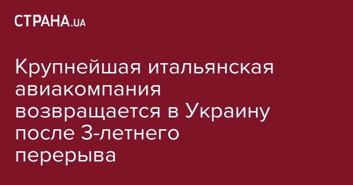 Крупнейшая итальянская авиакомпания возвращается в Украину после 3-летнего перерыва